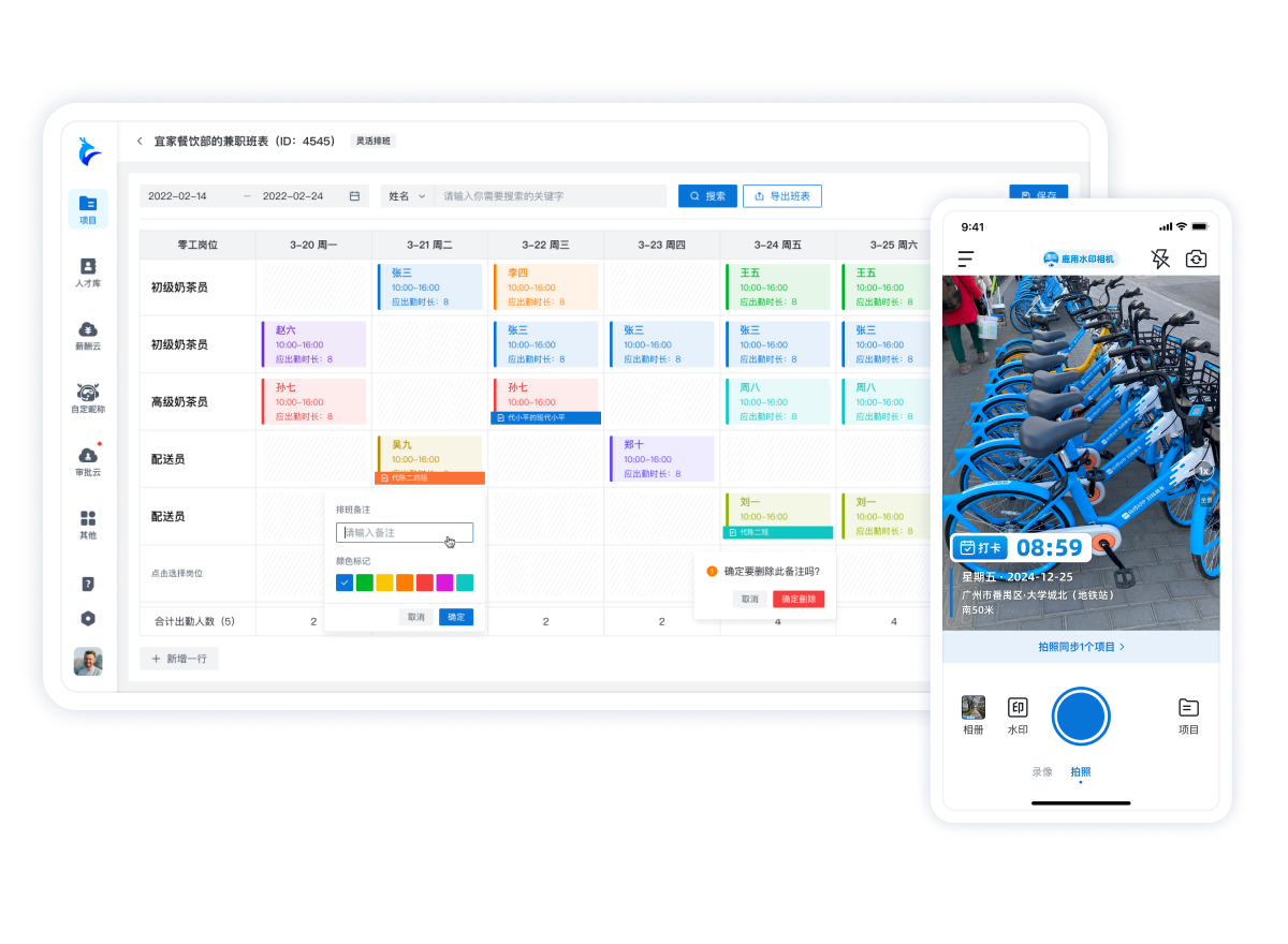 智能排班+水印相機打卡