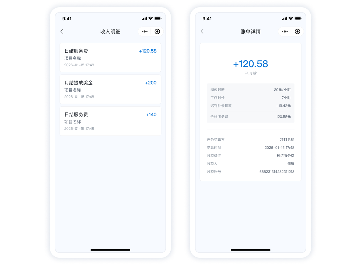 支持日結(jié),周結(jié),完工結(jié),實現(xiàn)零工快速結(jié)算
