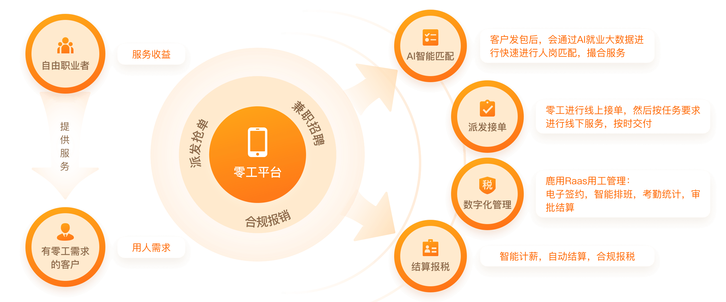 基于LBS+平臺大數(shù)據(jù),通過AI大數(shù)據(jù)快速響應(yīng)匹配,快速完成零工招募